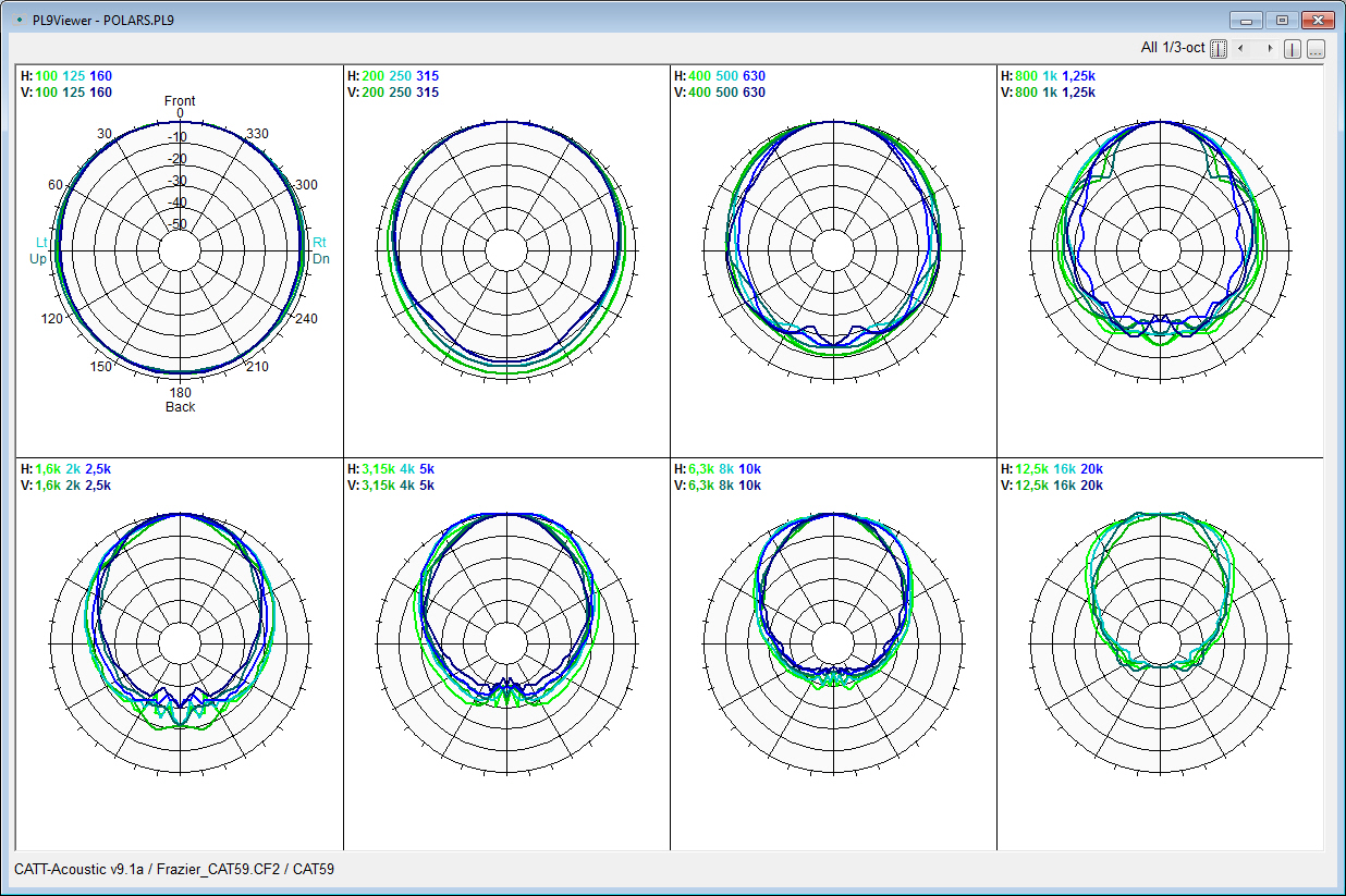 - Polar plot 1/3-octave, CF2 example, many display options -