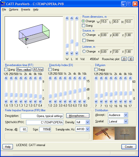 - Graph over typical RT/Volume ratios, current settings indicated -
