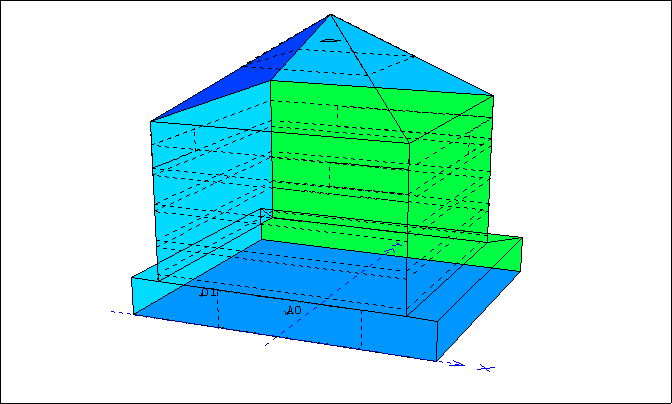 Windows are modeled as surface sub-divisions rather that individual surfaces (dashed lines).