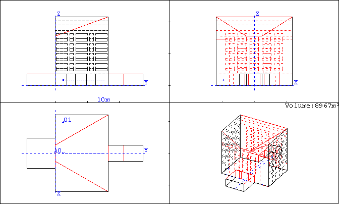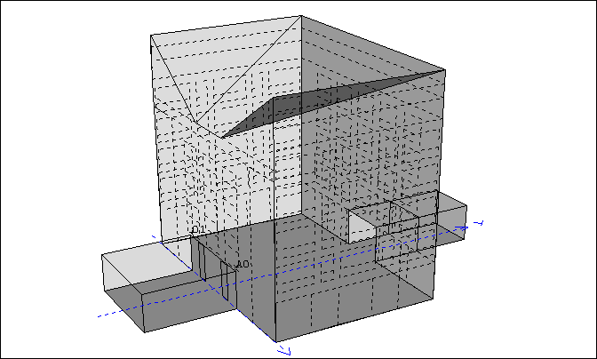 Windows are modeled as surface sub-divisions rather that individual surfaces (dashed lines). Also note that another shading palette has been used here.