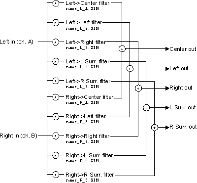 - Principal picture for the 2x5 FIR-filters required for stereo->5-channel